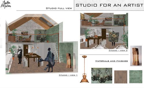 Thirty three year old HND Interior Design student Kike Pavlik from Paisley knew exactly who she wanted to design her studio for, she commented, ‘ I knew straight away that I would love to design a studio for one of my favourite contemporary artists - Martin Bergström.’