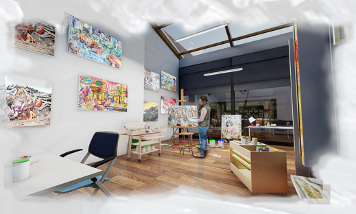 This has been an incredible opportunity to create a Live Client project with Honorary Fellow of WCS David Ross director Keppie Design Ltd. Our designers have responded with an excellent professional standard of work to design a ‘Studio for an Artist’. This experience contributes greatly to them articulating onto university or future employment and showcasing their work. It is equally great that the students have the opportunity to engage with their chosen artist.